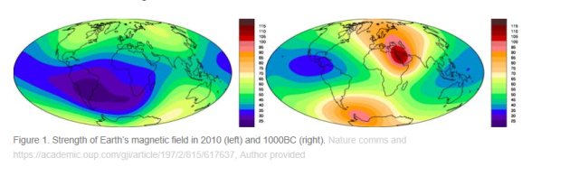 In 2017 an article was released by Christopher Davies NERC Independent Research Fellow/Lecturer in Geophysics, University of Leeds. The article introduces a magnetic spike that occurred some 3,000 years ago and is located in Jordan and Israel.