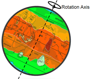 If the radiant energy of the Sun were directly responsible for the temperature variation on the surface of the planet, we should expect the region of close proximity that lies at a right angle projection to the Sun radiant energy path to be the hottest! Yet, the Martian temperature belts are tilted by 25.19° approximately than the region of close proximity to the Sun. They are much centered on the axis of the spinning of the planet.