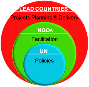 Lead country projects, is a simple concept where each country of the world is assigned a leading responsibility or a set of leading responsibilities to manage the preparation and transformation during Earth Changes. As in every successful project, a timely, quantitative, and qualitative vision is defined and agreed upon by all involved. There follows, the organization of every project, wherein a lead country has a set of responsibilities and led countries have complementary and supporting ones. The utilization of information technology is a must to provide instantaneous data and information sharing round the clock and across the planet. While such projects assemble and embrace the expertise, knowledge and wisdom of project managers, industry experts and those who maintain community relations, there should be a pool of shared services and competence in finance, human resources, legislation, logistics, and technology. I believe that the human race draws closer at times of calamity. In the likely event that wars will cease to exist for a good period of time, the United Nations, could, reinvent itself for a period of time, as the Policy Maker, stating the rules and guidelines that will aid the transformation. nongovernmental organizations (NGOs) could play facilitator roles in such global and cross-country projects. The United Nations climate change conference in Poznań concluded in December 2008 with a clear commitment from governments to shift into full negotiating mode in order to shape an ambitious and effective international response to climate change, to be agreed upon in Copenhagen at the end of 2009; which did not turn out to be a success. The core of all discussions and negotiations must change from a narrow view to set rules and quota to control carbon dioxide emission. As presented earlier on this site, carbon dioxide increase is not manmade. Instead and based on the actual cause, the effort should be exerted to draw a holistic time view on Earth changes and to lay down strategies, projects and roles to minimize the impact of such changes.